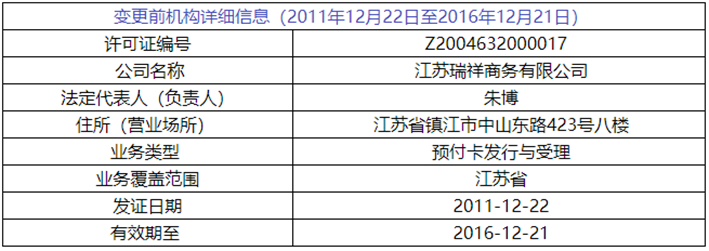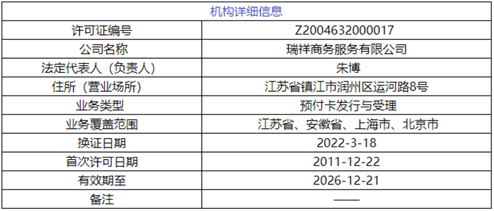 瑞祥商务业务类型为预付卡发行与受理,值得注意的是,在2011年获得支付牌照的时,其业务范围仅为江苏省。后来通过承接业务,瑞祥商务先后合并合肥新思维商业管理有限责任公司、上海大千商务服务有限公司,预付卡发行与受理业务范围新增安徽、上海两地。再后来,瑞祥商务母公司瑞祥集团通过股权控制的形式,又承接了北京繁星山谷信息技术有限公司业务,业务范围再增加北京市。