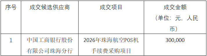 十堰:2026年珠海航空POS机手续费成交结果公示